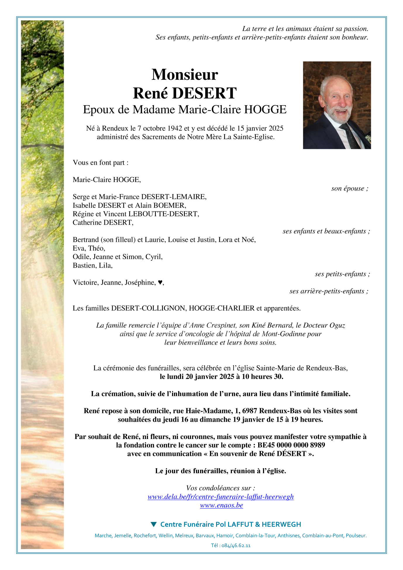 Died in Rendeux-Bas (6987) on 15 January 2025 at the age of 82 years