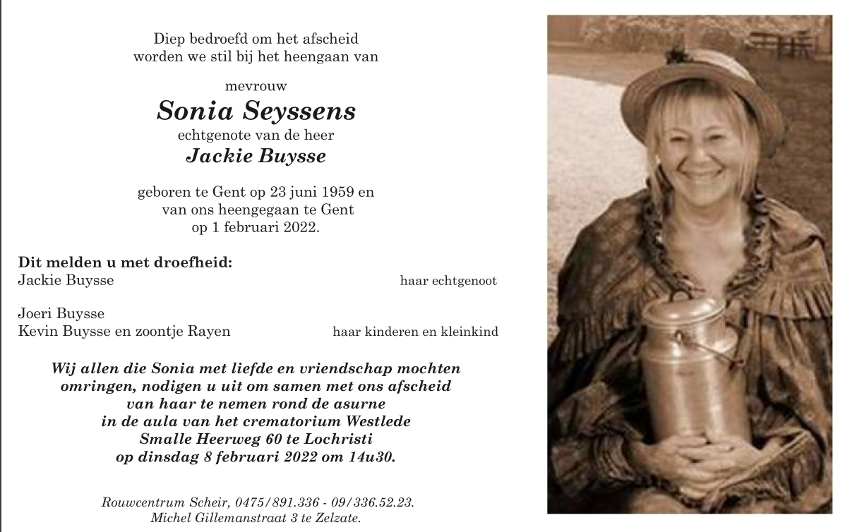 Overleden te Gent (9000) op dinsdag 1 februari 2022 op 62-jarige leeftijd