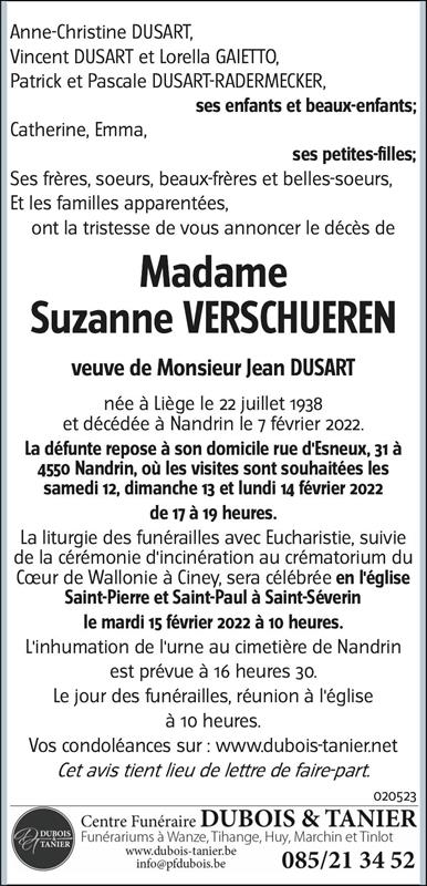 Décédée à Nandrin (4550) le lundi 7 février 2022 à l'âge de 83 ans