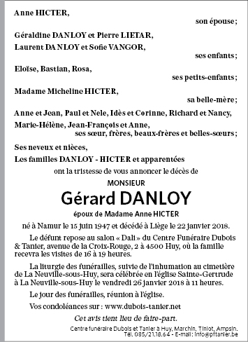 Fallecido en Liège (4000) el lunes, 22 de enero de 2018 a la edad de 70 años