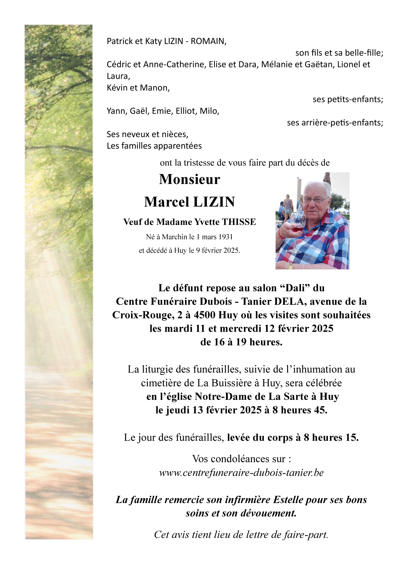Décédé à Huy (4500) le dimanche 9 février 2025 à l'âge de 93 ans