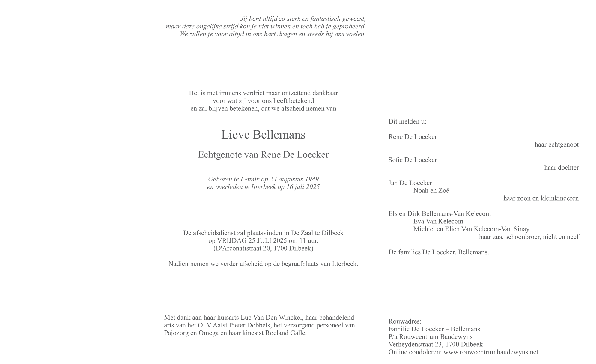 Died in Itterbeek (1701) on 16 July 2025 at the age of 75 years
