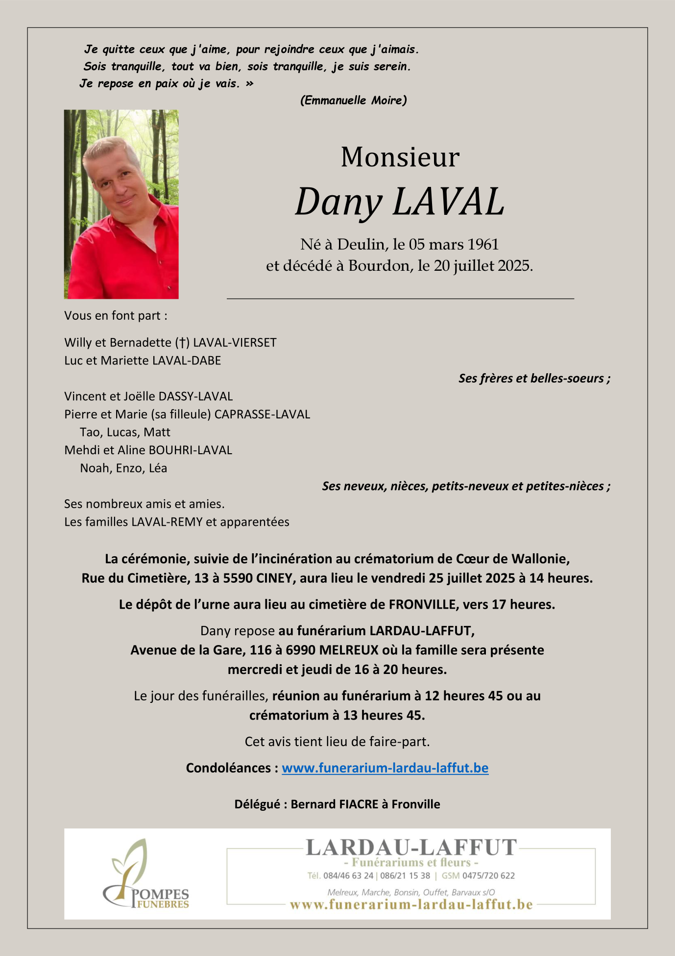 Fallecido en Bourdon (6990) el domingo, 20 de julio de 2025 a la edad de 64 años