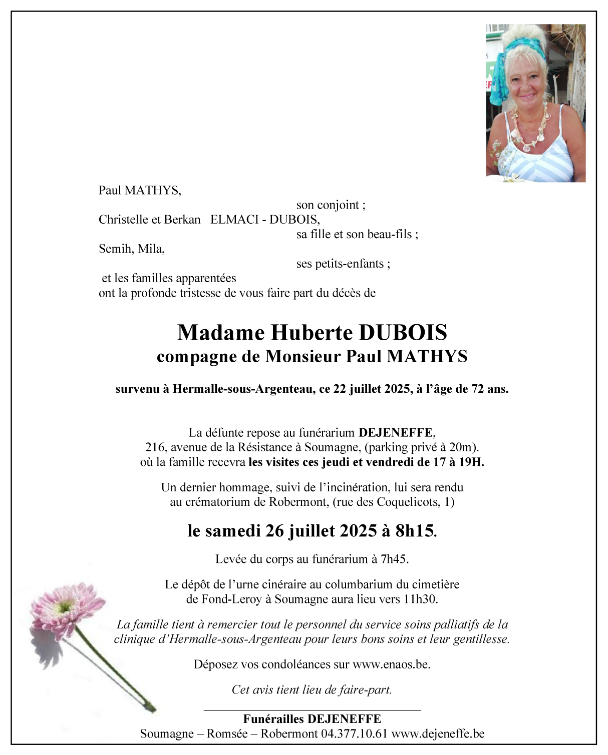 Died in Hermalle-sous-Argenteau (4681) on 22 July 2025 at the age of 71 years