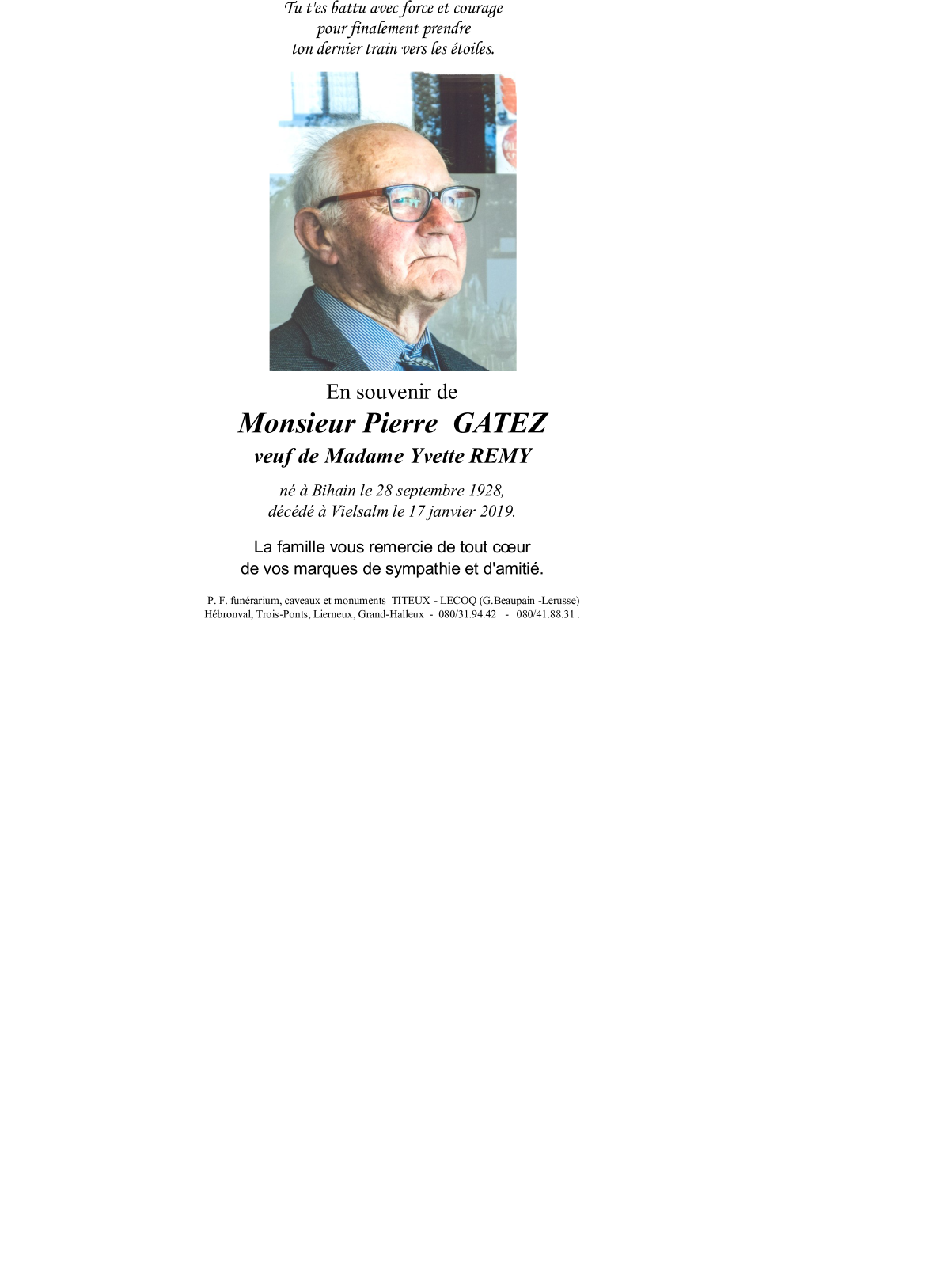 Fallecido en Vielsalm (6690) el jueves, 17 de enero de 2019 a la edad de 90 años
