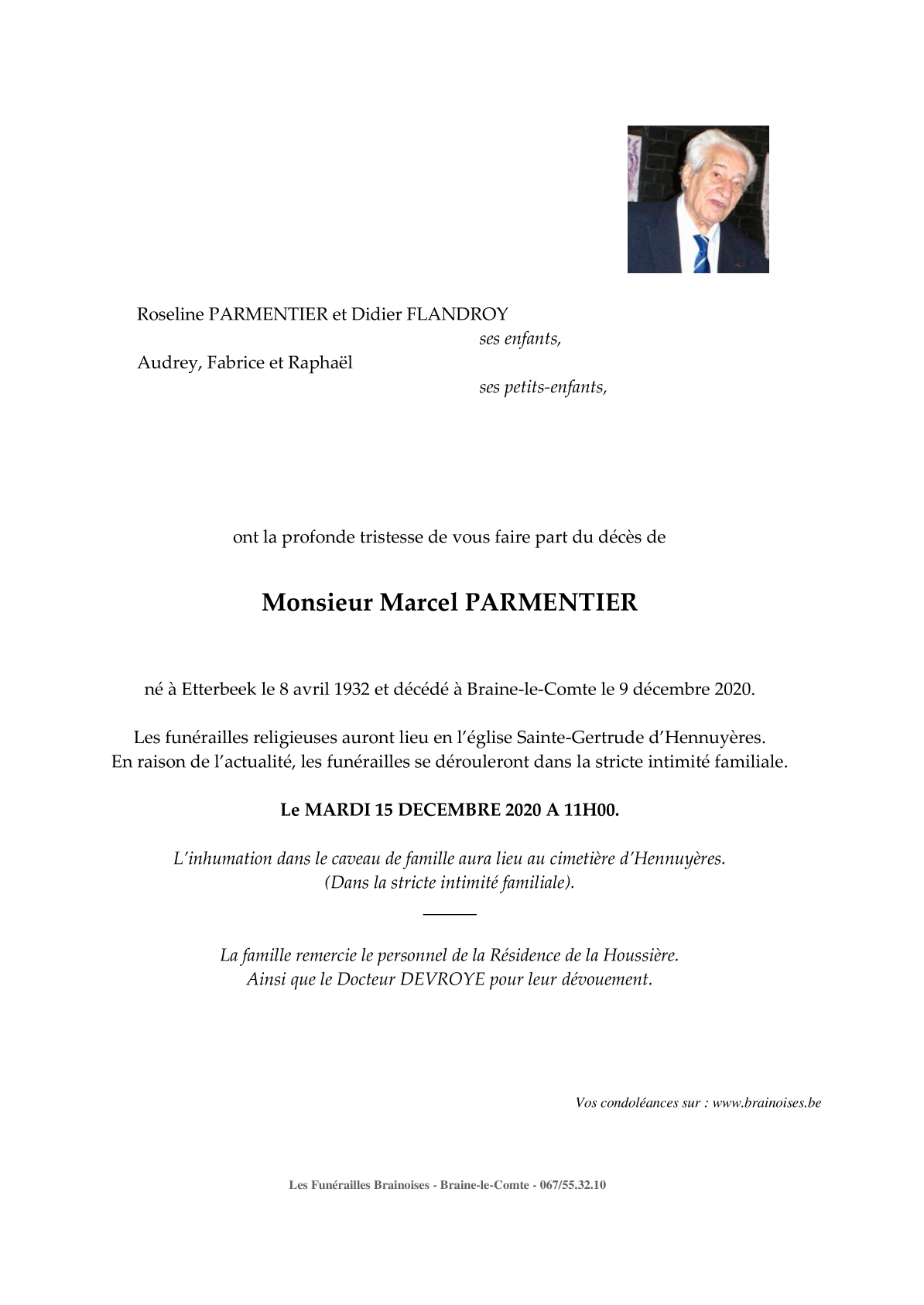 Décédé à Braine-le-Comte (7090) le mercredi 9 décembre 2020 à l'âge de 88 ans