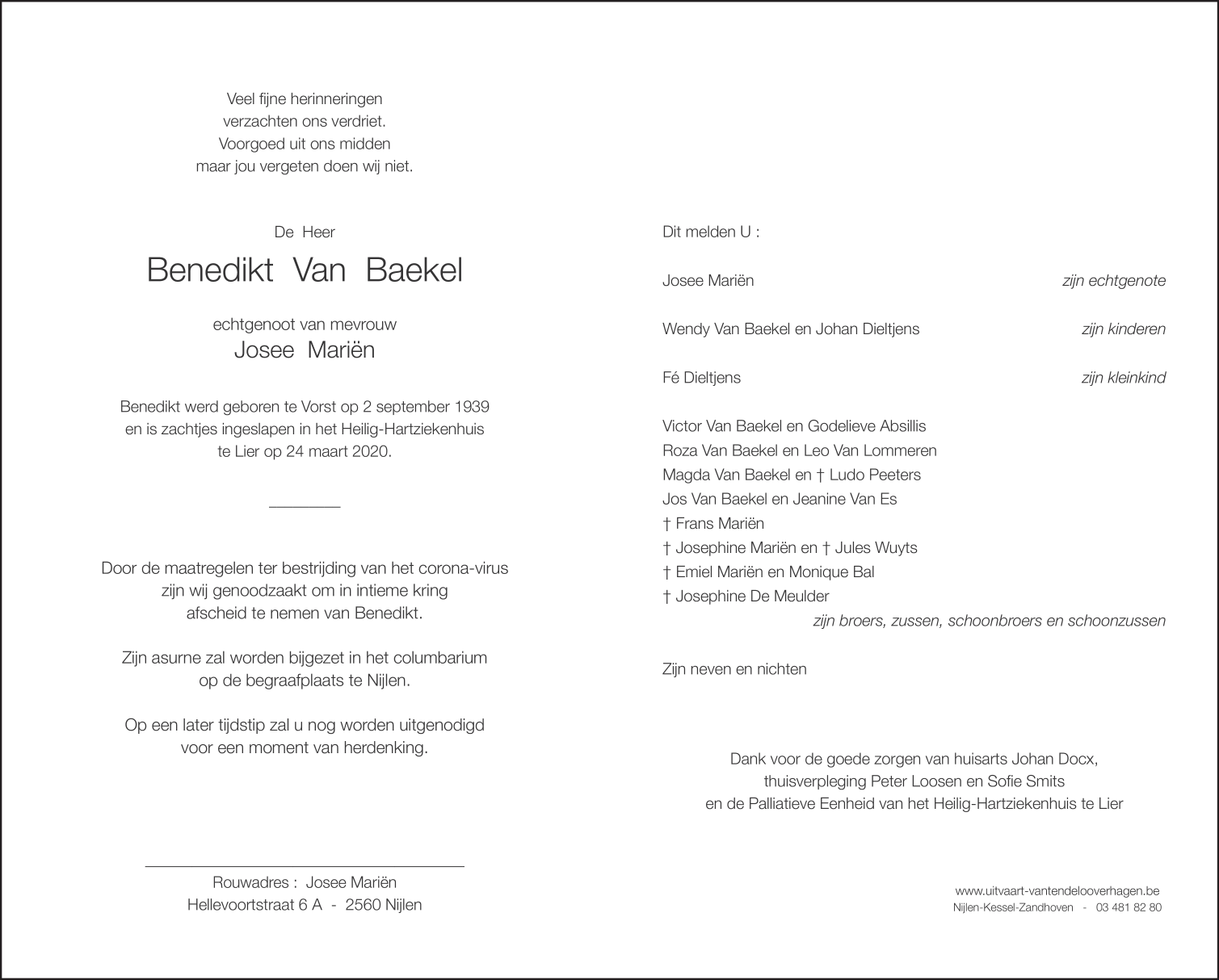 Décédé à Lier (2500) le mardi 24 mars 2020 à l'âge de 80 ans