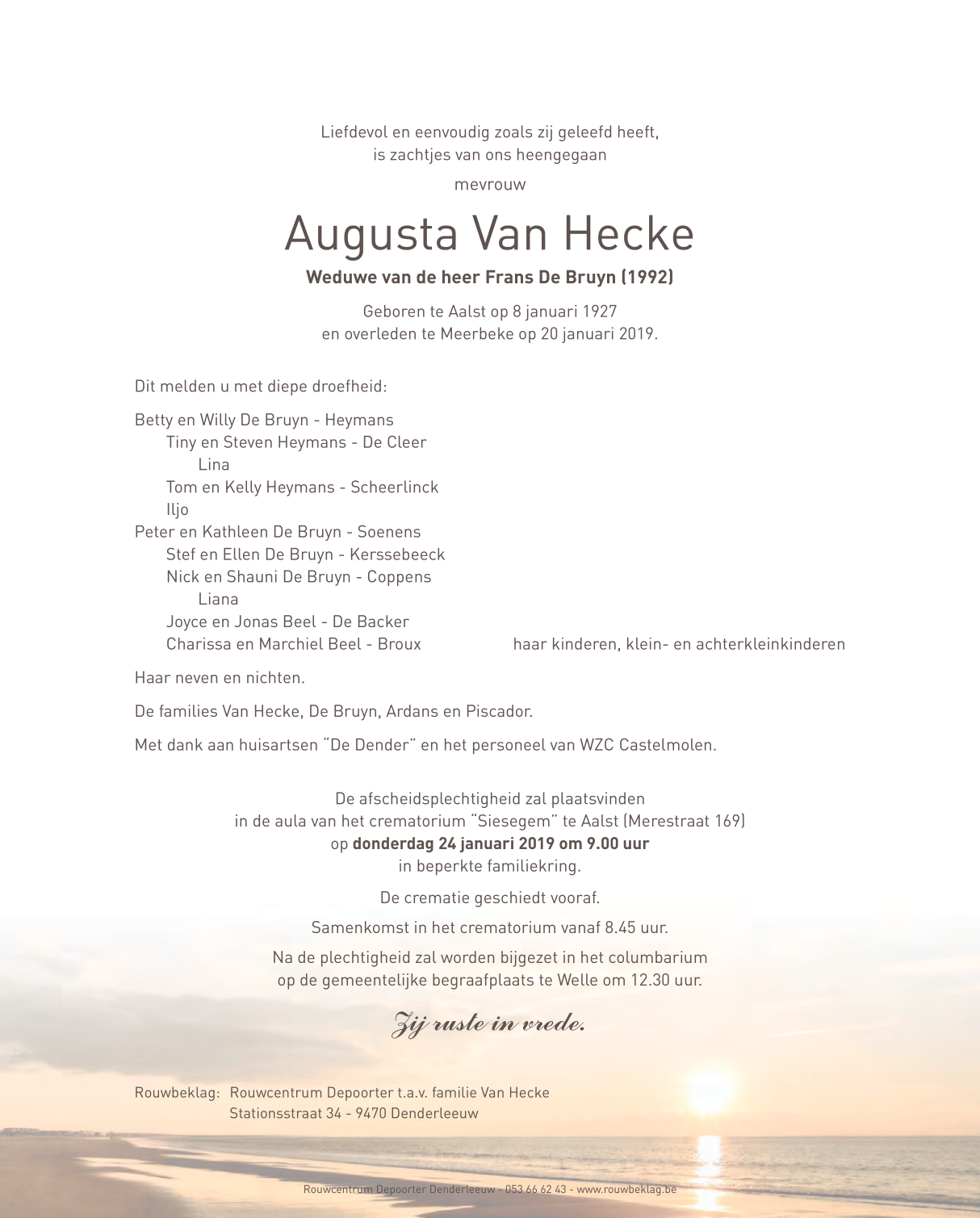 Overleden te Meerbeke (9402) op zondag 20 januari 2019 op 92-jarige leeftijd