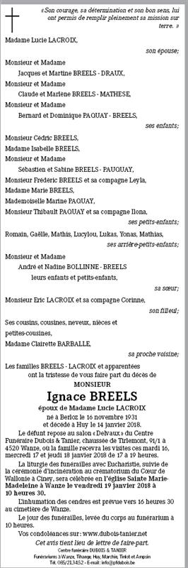 Décédé à Huy (4500) le dimanche 14 janvier 2018 à l'âge de 86 ans