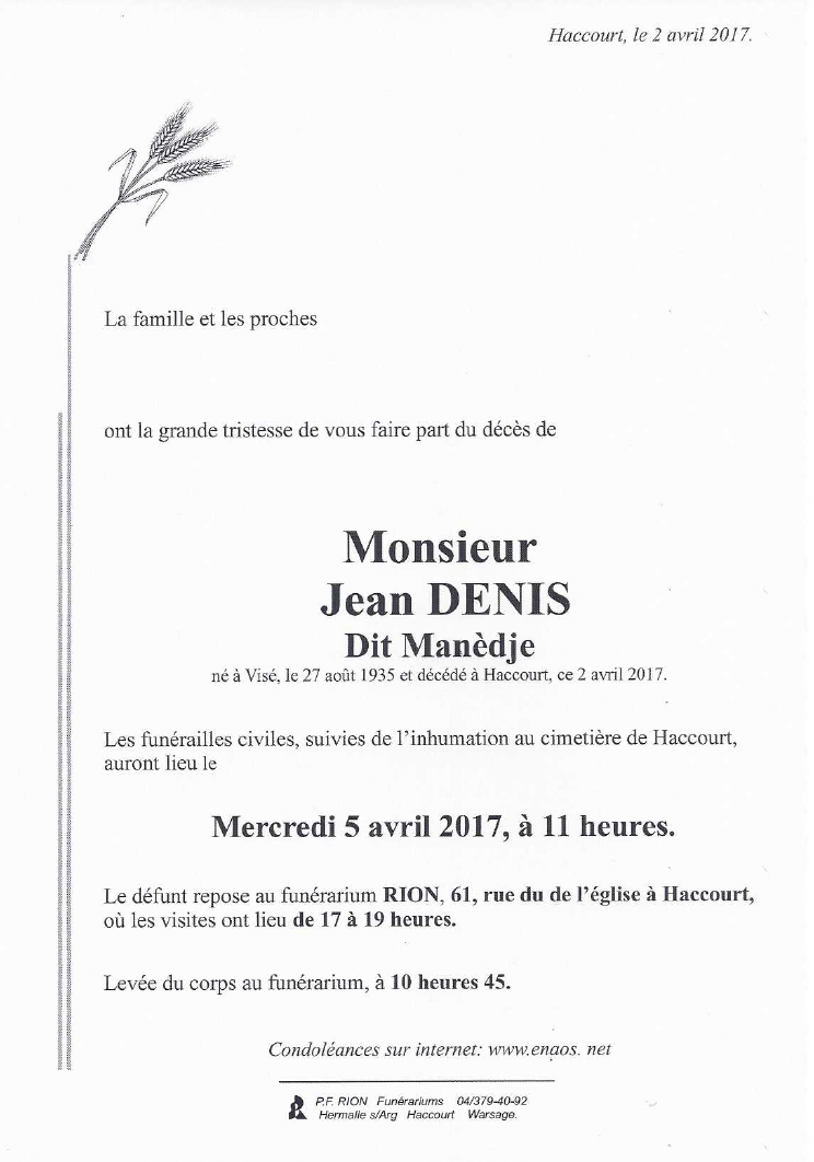 Overleden te Haccourt (4684) op maandag 3 april 2017 op 81-jarige leeftijd