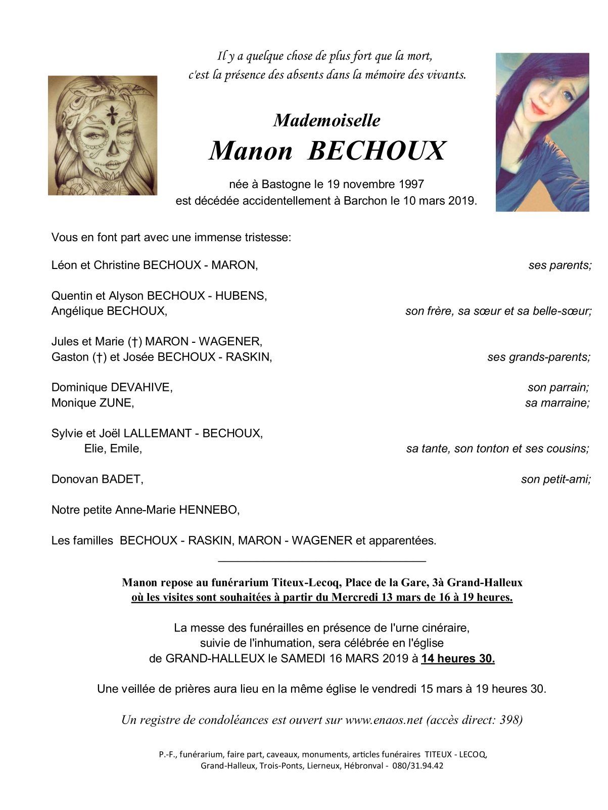 Overleden te Barchon (4671) op zondag 10 maart 2019 op 21-jarige leeftijd