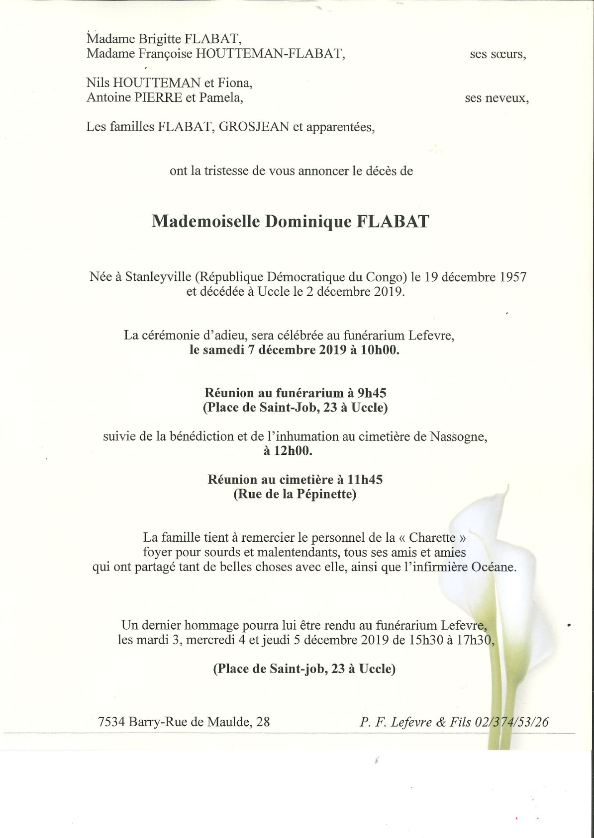 Fallecida en Bruxelles (Uccle) (1180) el lunes, 2 de diciembre de 2019 a la edad de 61 años
