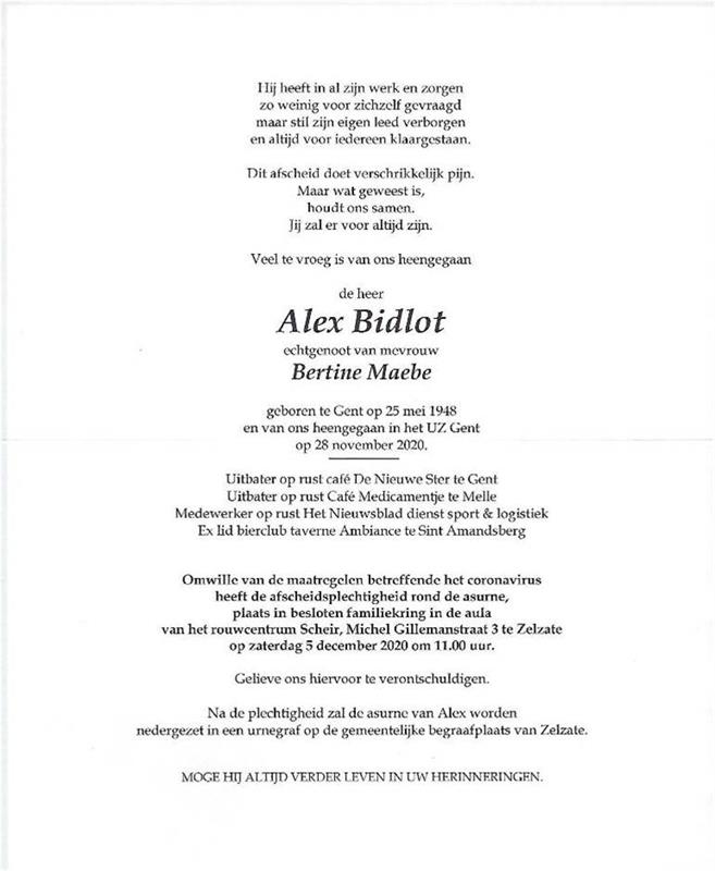 Died in Gent (9000) on 28 November 2020 at the age of 72 years