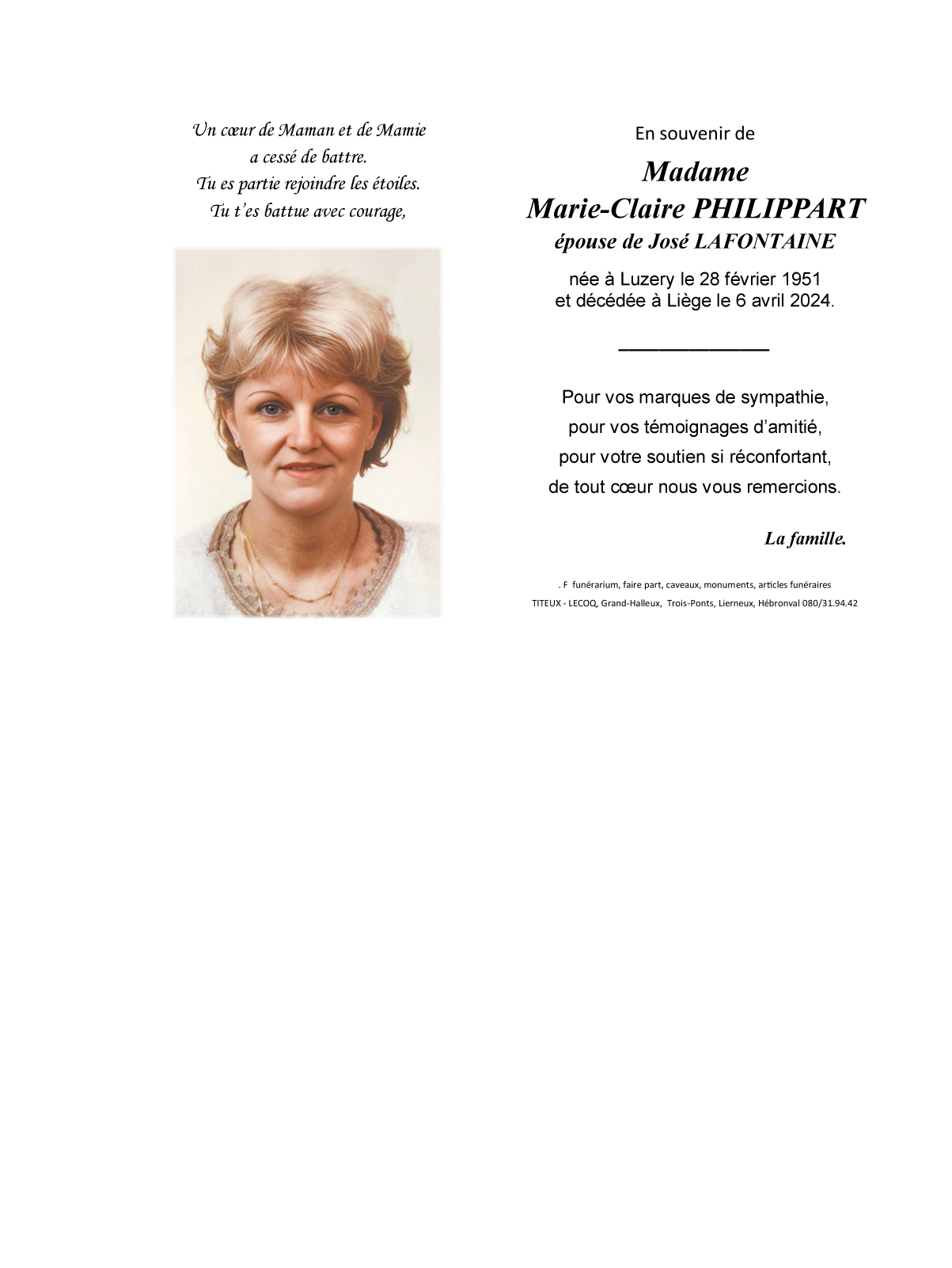 Echtgenote van Monsieur José LAFONTAINE