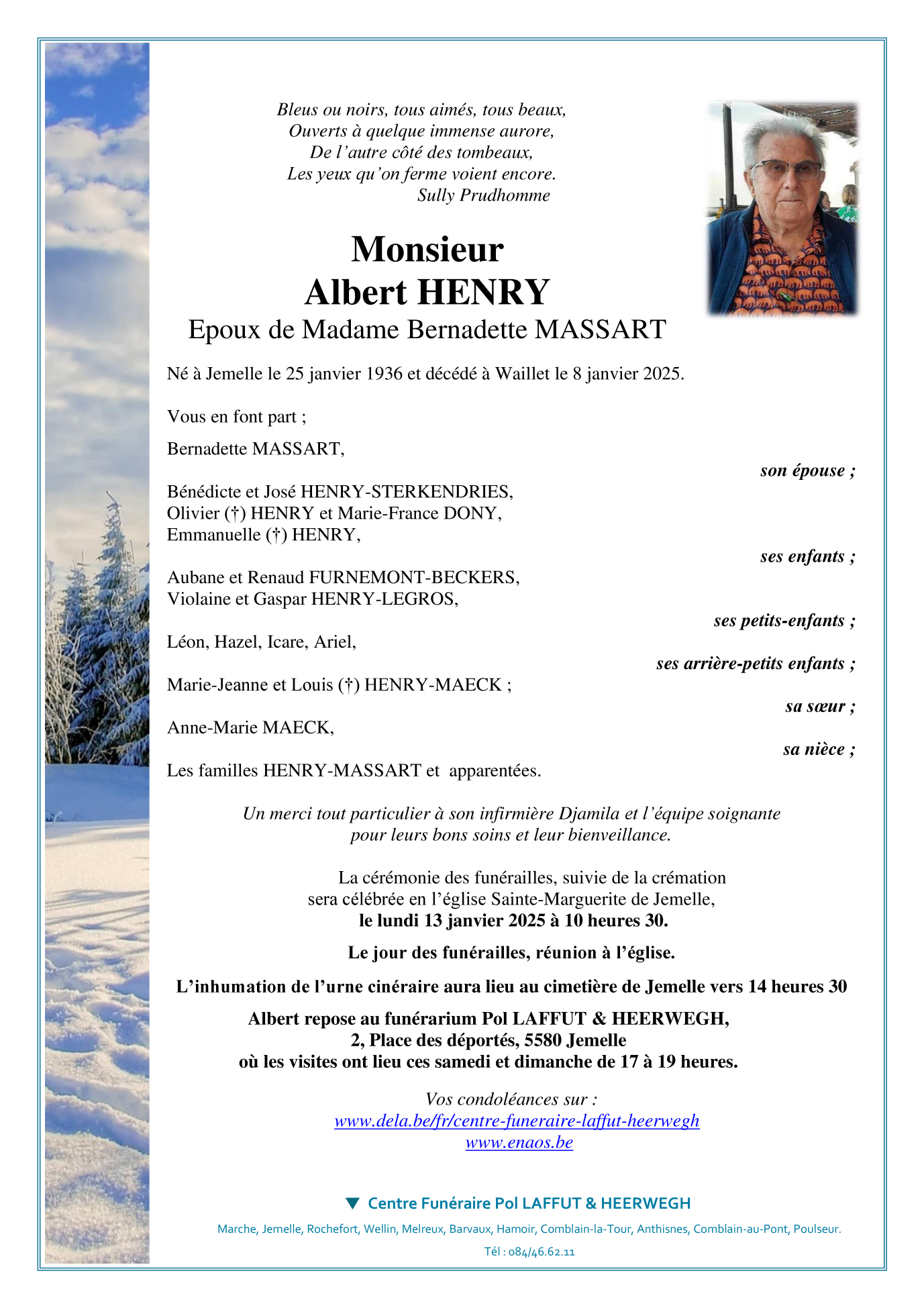 Né à Jemelle (5580) le samedi 25 janvier 1936