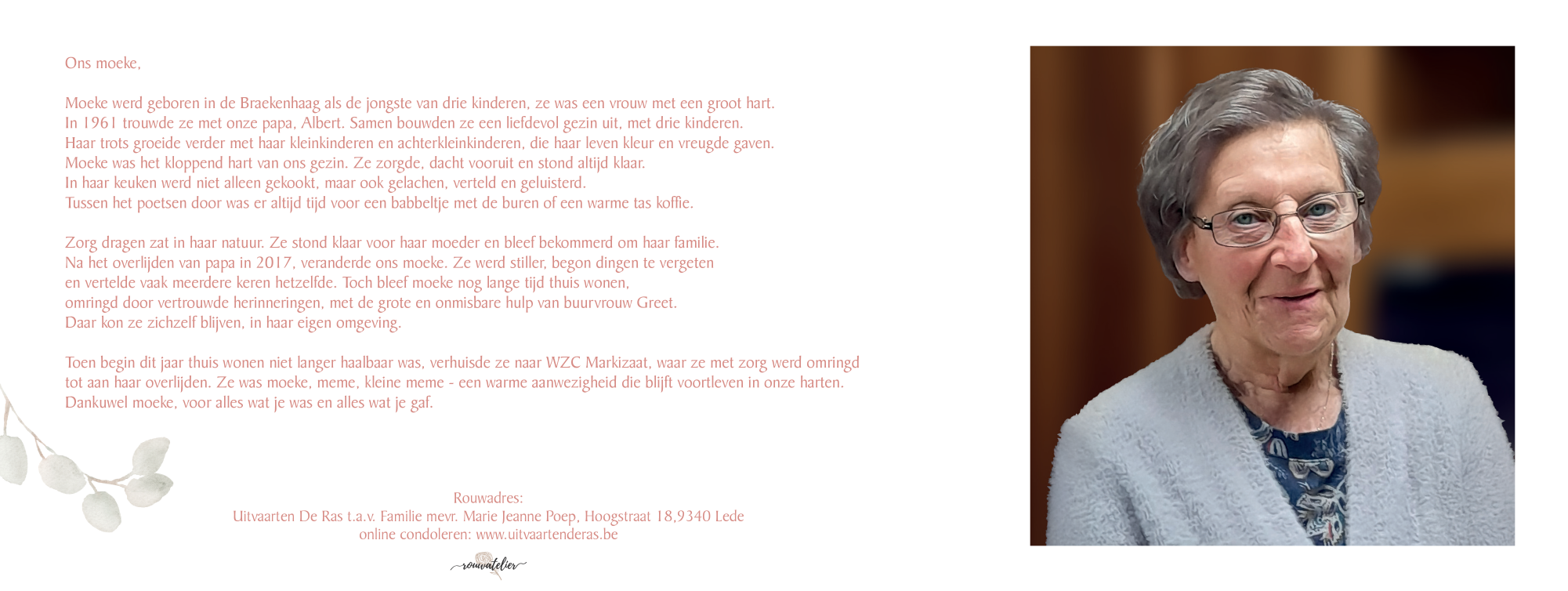 Décédée à Lede (9340) le mardi 23 décembre 2025 à l'âge de 88 ans