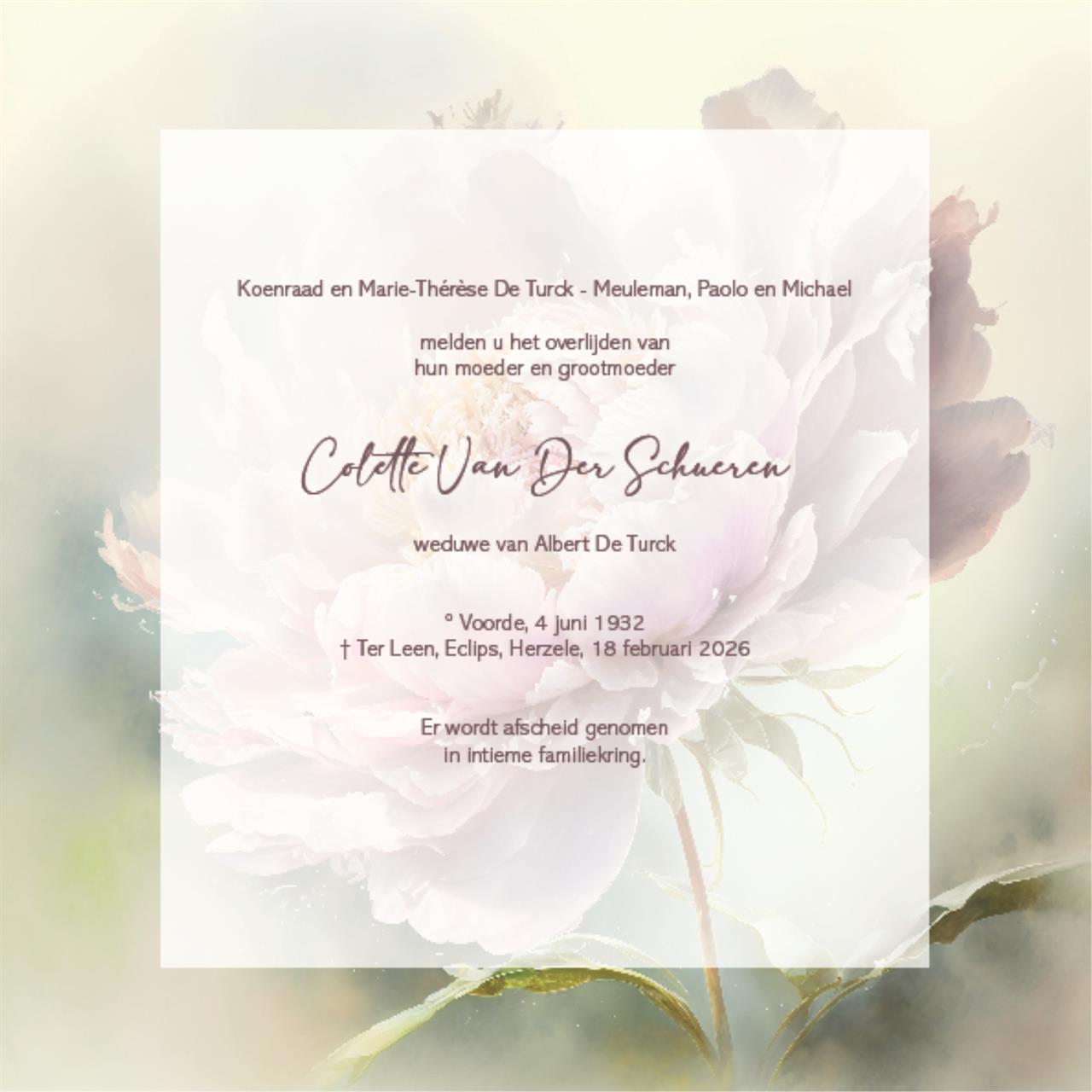 Veuve de De Heer Albert De Turck
