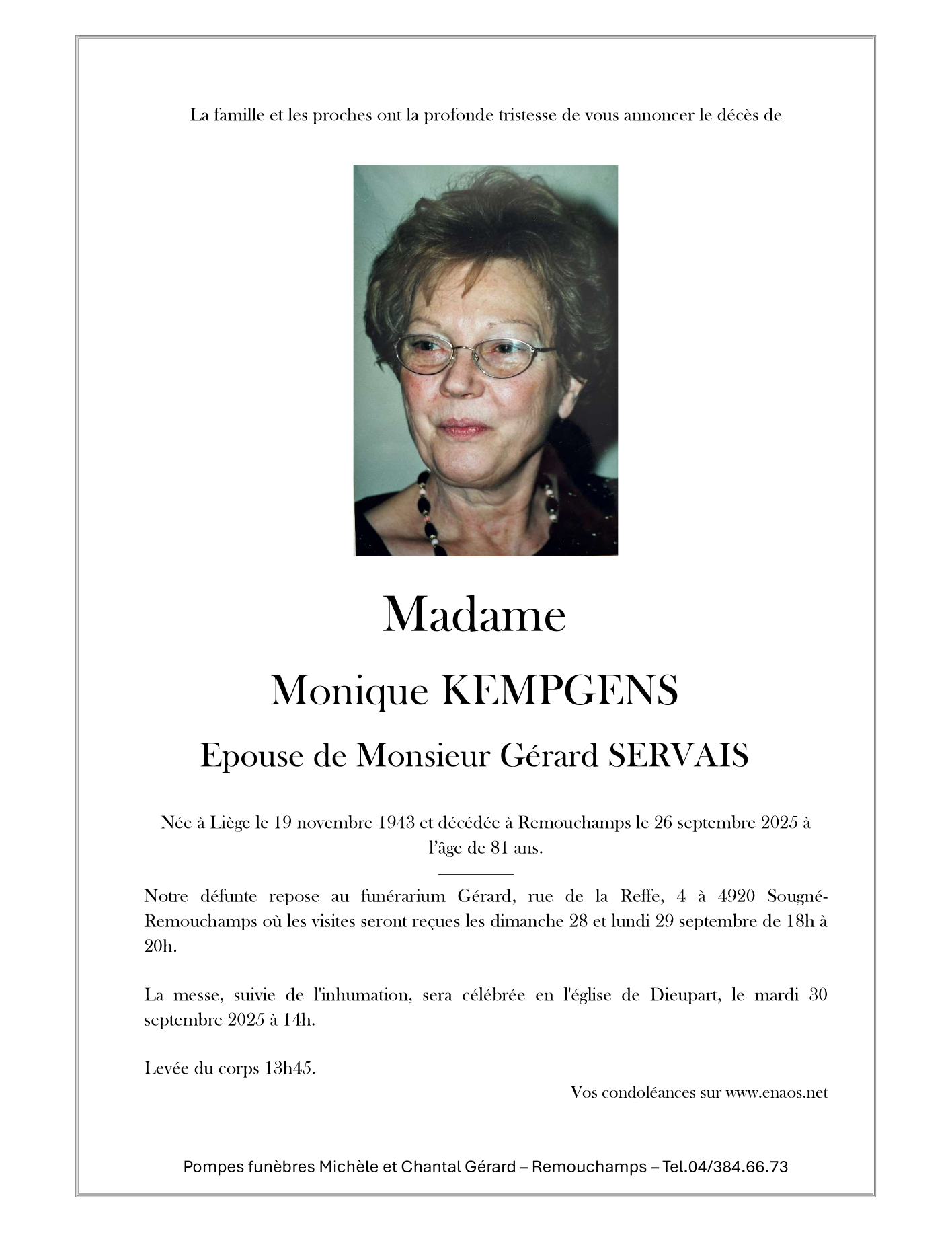 Died in Aywaille (4920) on 26 September 2025 at the age of 81 years