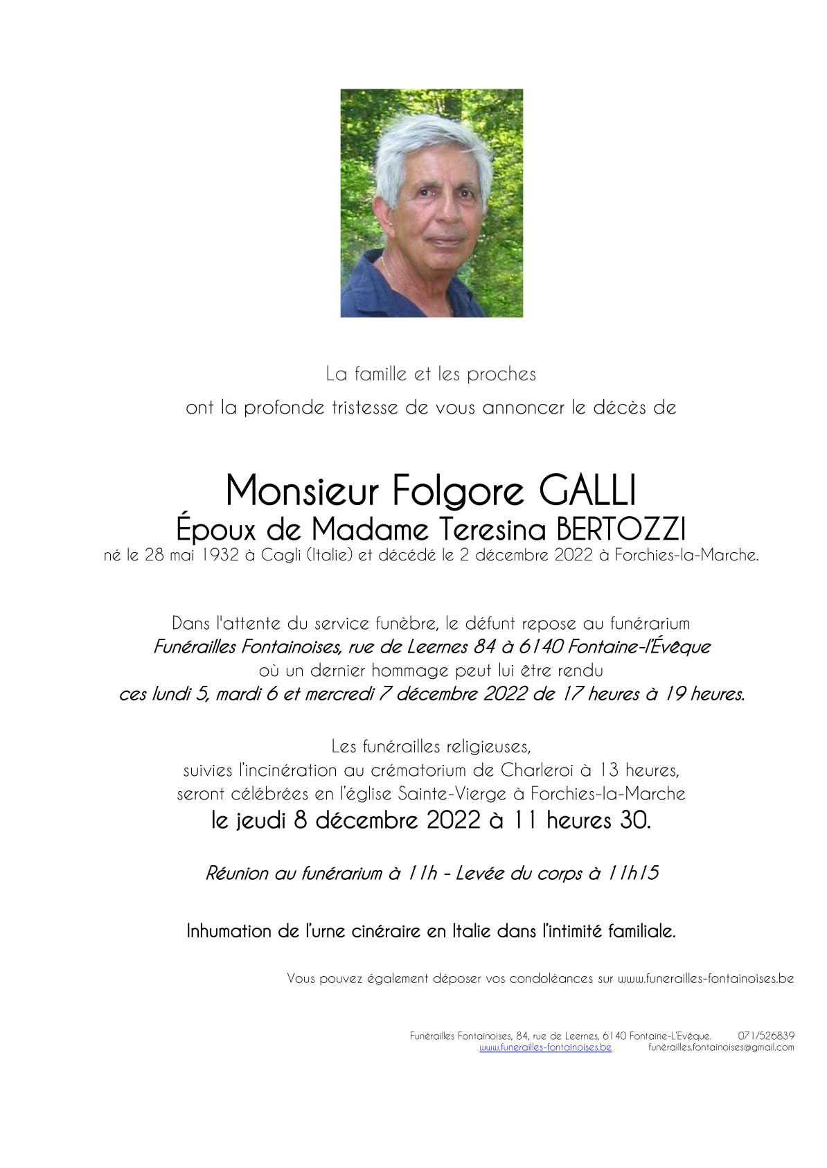 Décédé à Forchies-la-Marche (6141) le vendredi 2 décembre 2022 à l'âge de 90 ans