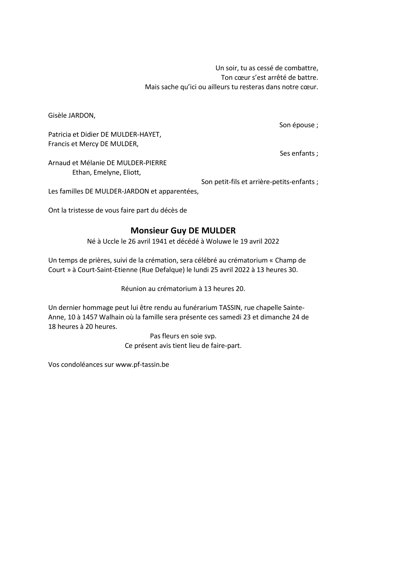 Overleden te Bruxelles (Woluwe-Saint-Lambert) (1200) op dinsdag 19 april 2022 op 80-jarige leeftijd