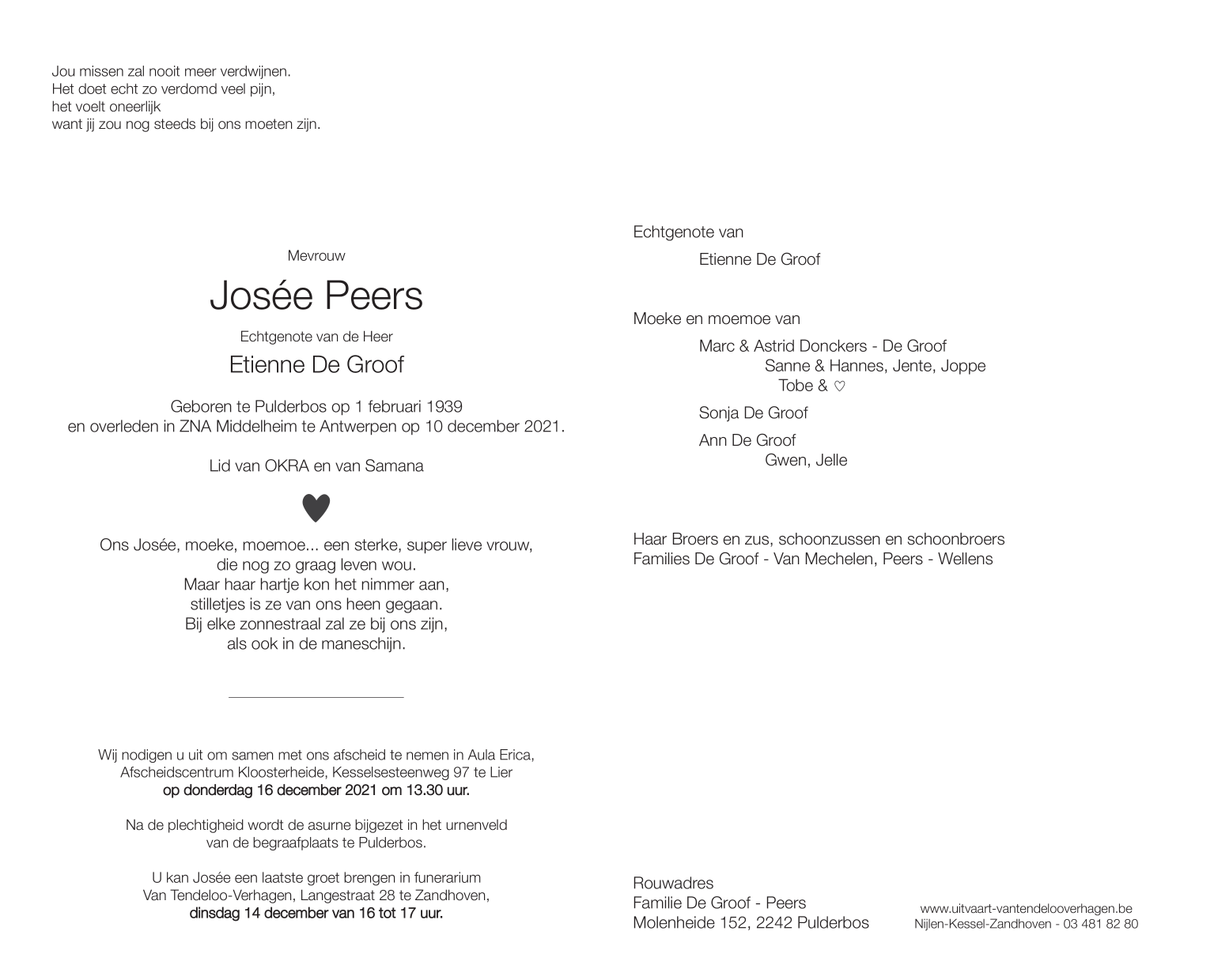 Died in Antwerpen (2020) on 10 December 2021 at the age of 82 years