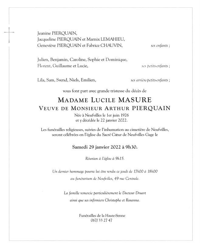 Décédée à Neufvilles (7063) le samedi 22 janvier 2022 à l'âge de 95 ans