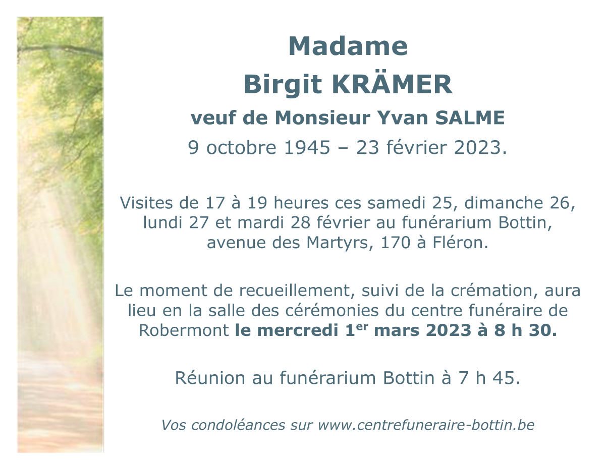 Weduwe van Monsieur Yvan SALME