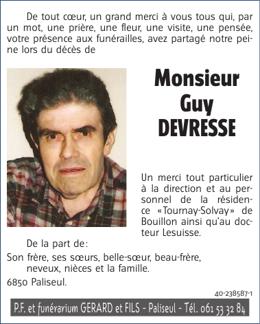 Died in Bouillon (6830) on 17 March 2016 at the age of 68 years