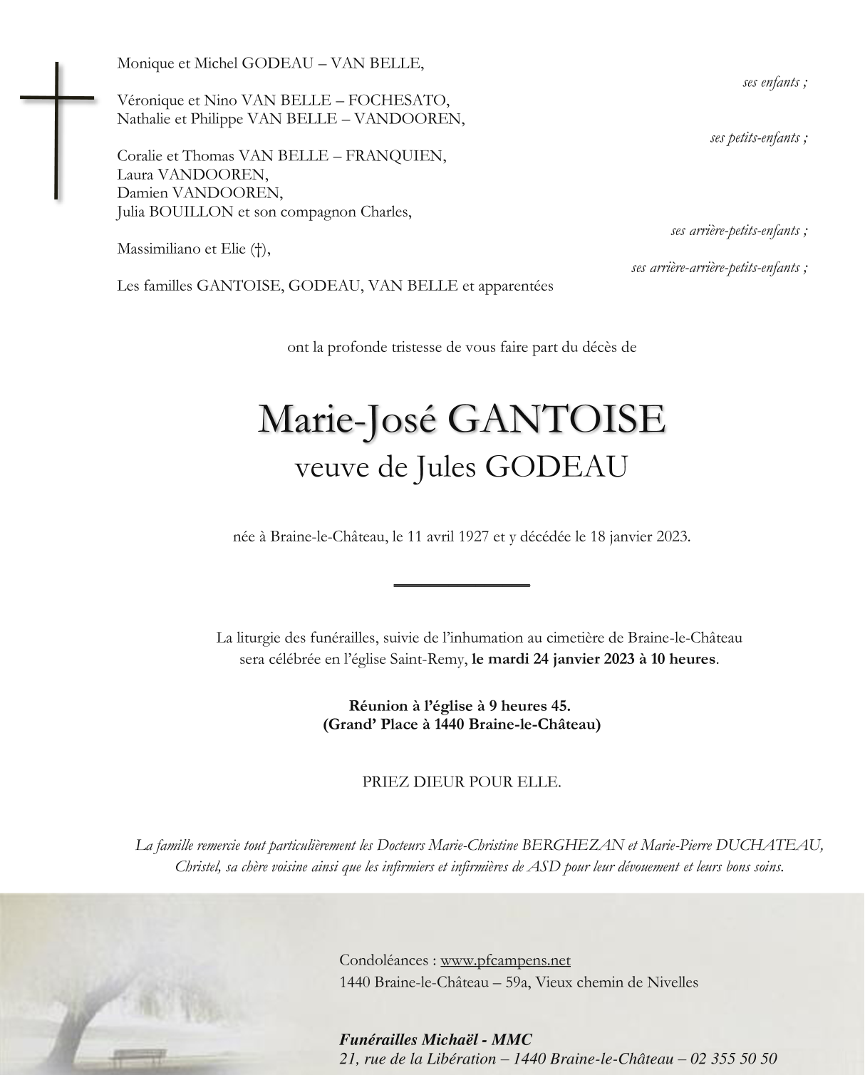 Died in Braine-le-Château (1440) on 18 January 2023 at the age of 95 years