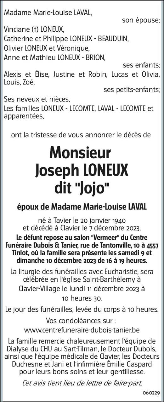 Fallecido en Clavier (4560) el jueves, 7 de diciembre de 2023 a la edad de 83 años
