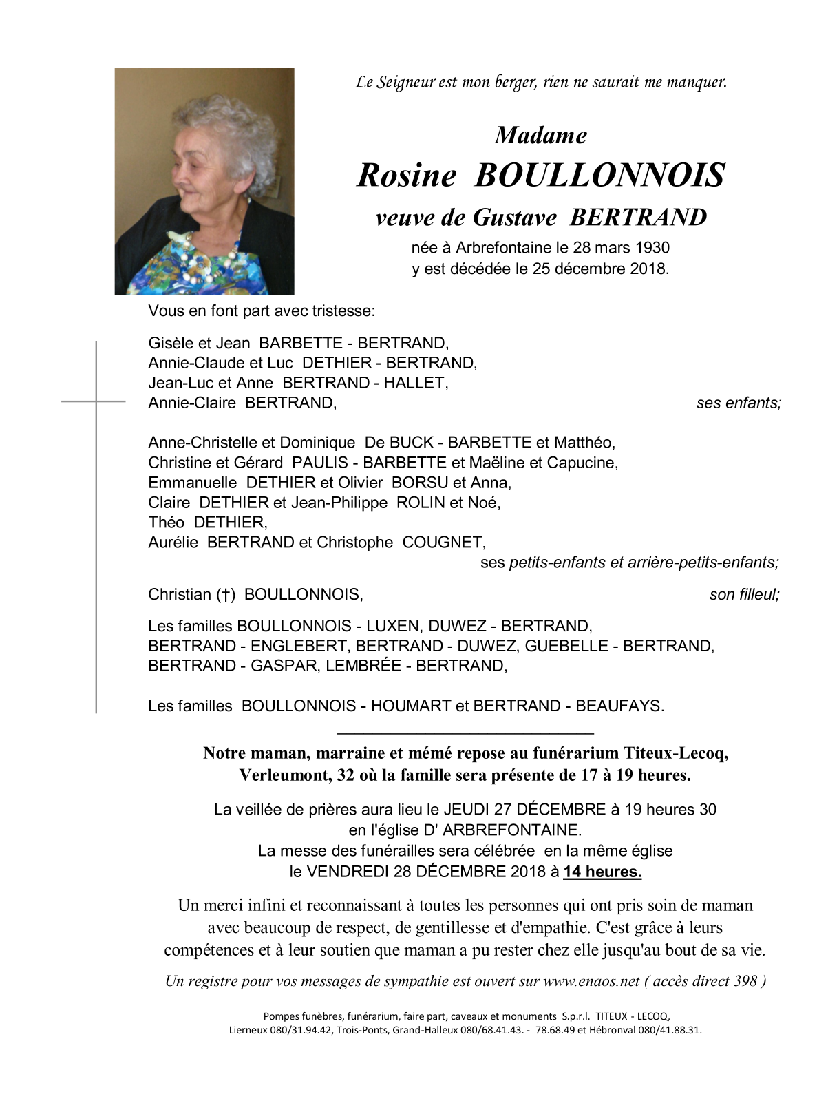 Died in Arbrefontaine (4990) on 25 December 2018 at the age of 88 years
