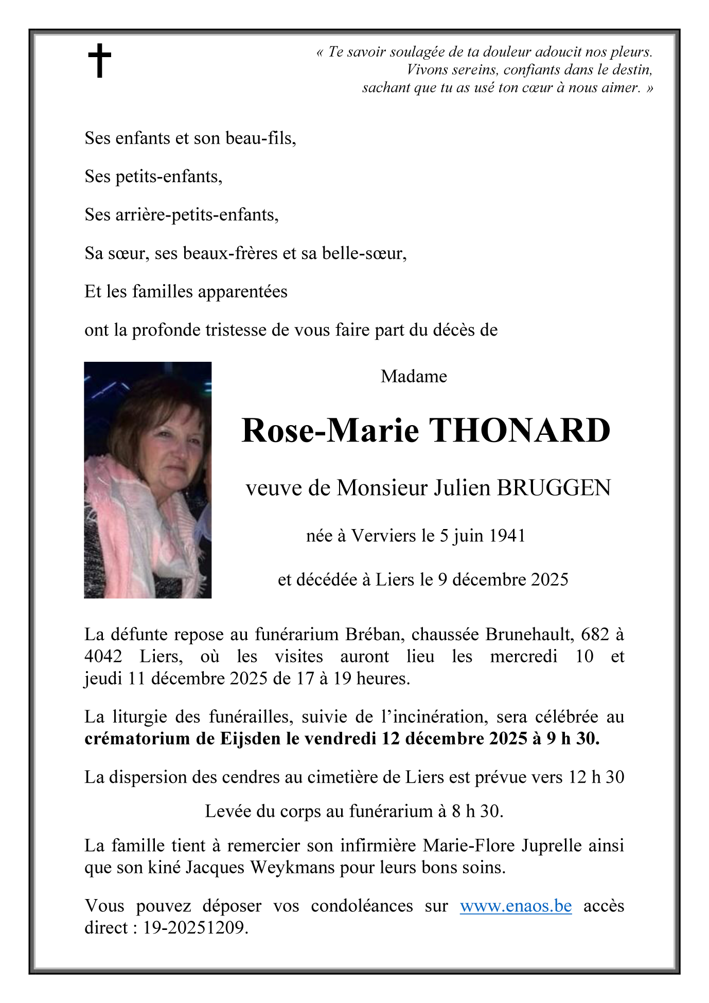Madame Rose-Marie THONARD veuve de Julien BRUGGEN