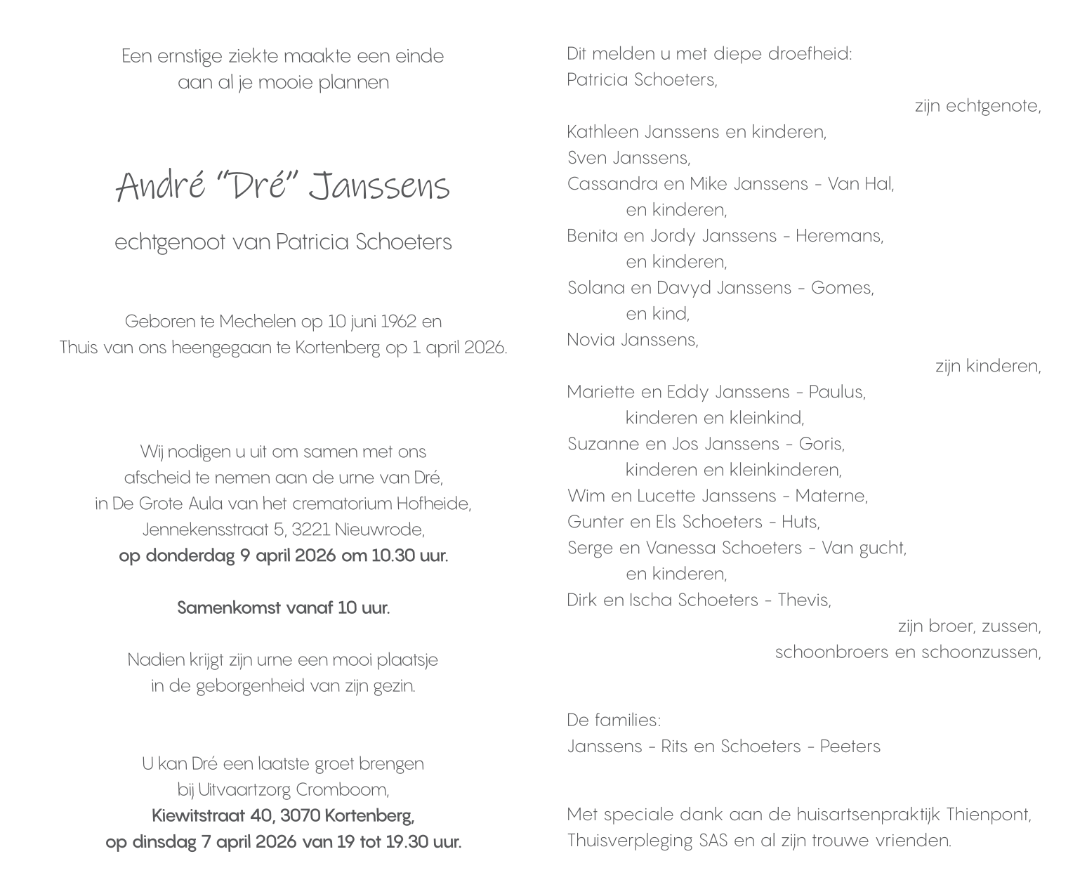 Overleden te Kortenberg (3070) op woensdag 1 april 2026 op 63-jarige leeftijd