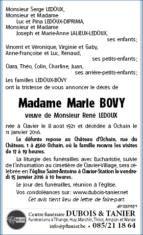 Overleden te Ochain (4560) op maandag 11 januari 2016 op 94-jarige leeftijd