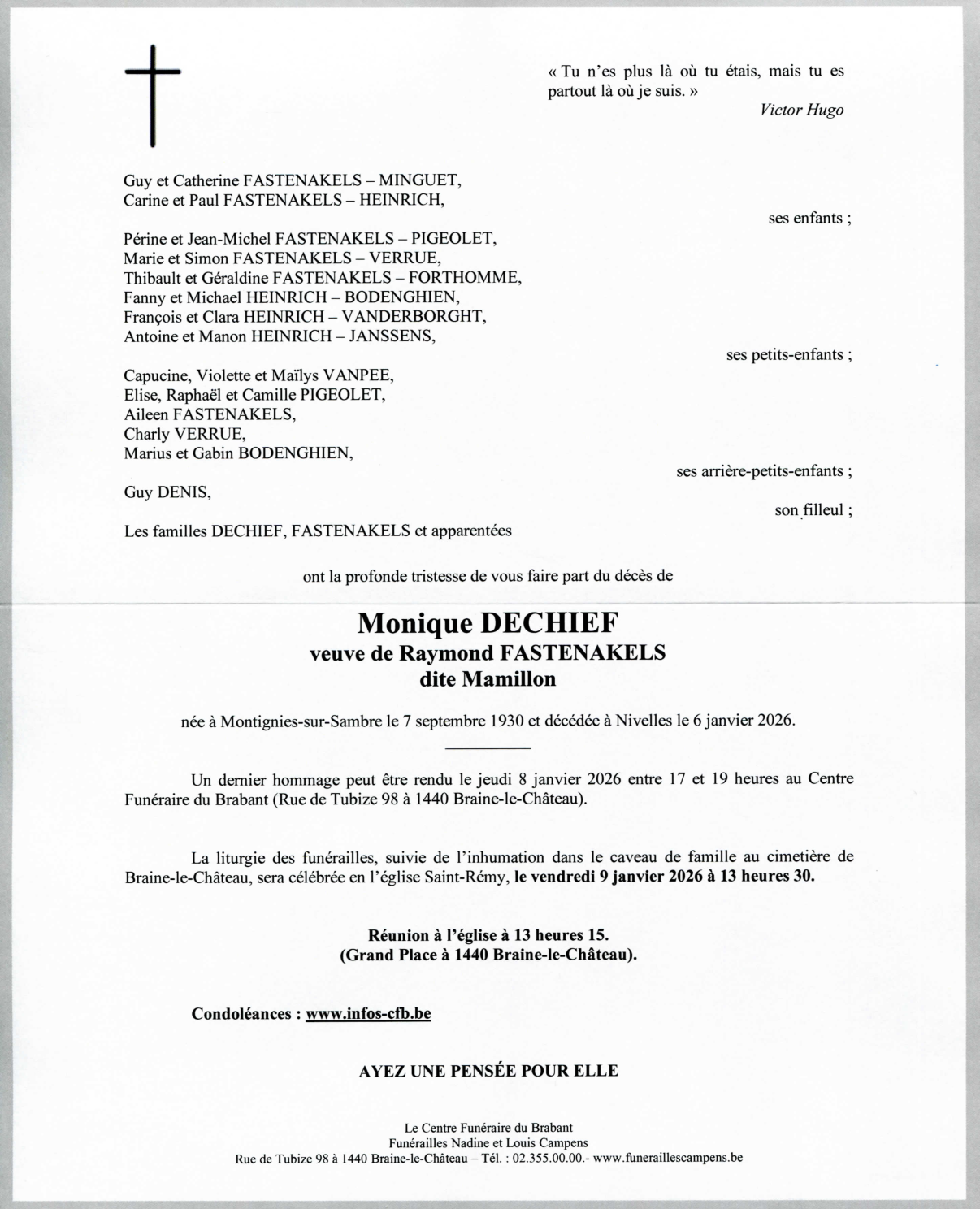 Veuve de Monsieur Raymond FASTENAKELS
