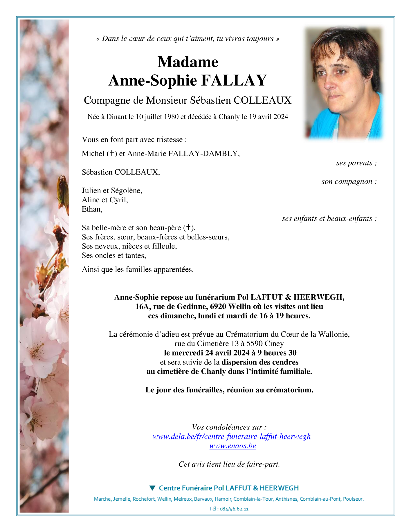 Overleden te Chanly (6921) op vrijdag 19 april 2024 op 43-jarige leeftijd