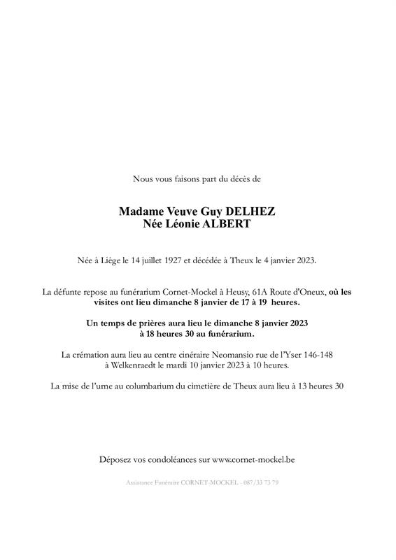 Weduwe van Monsieur Guy DELHEZ