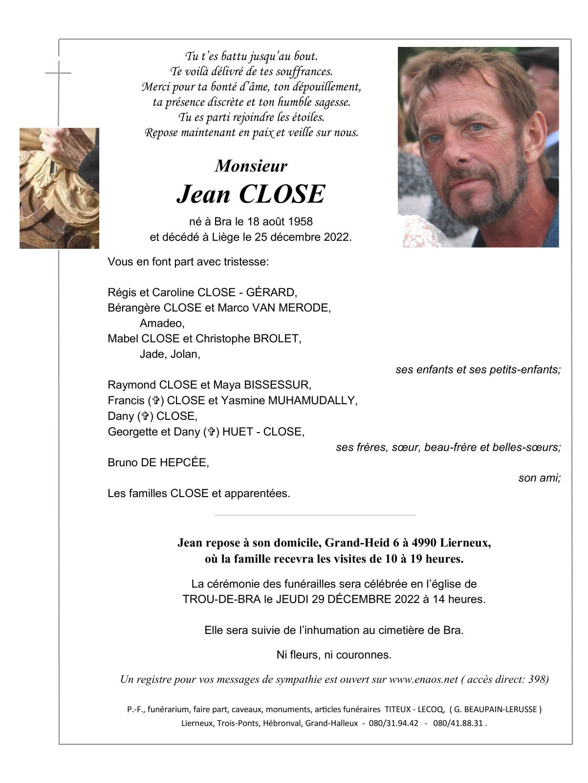 Overleden te Liège (4000) op zondag 25 december 2022 op 64-jarige leeftijd