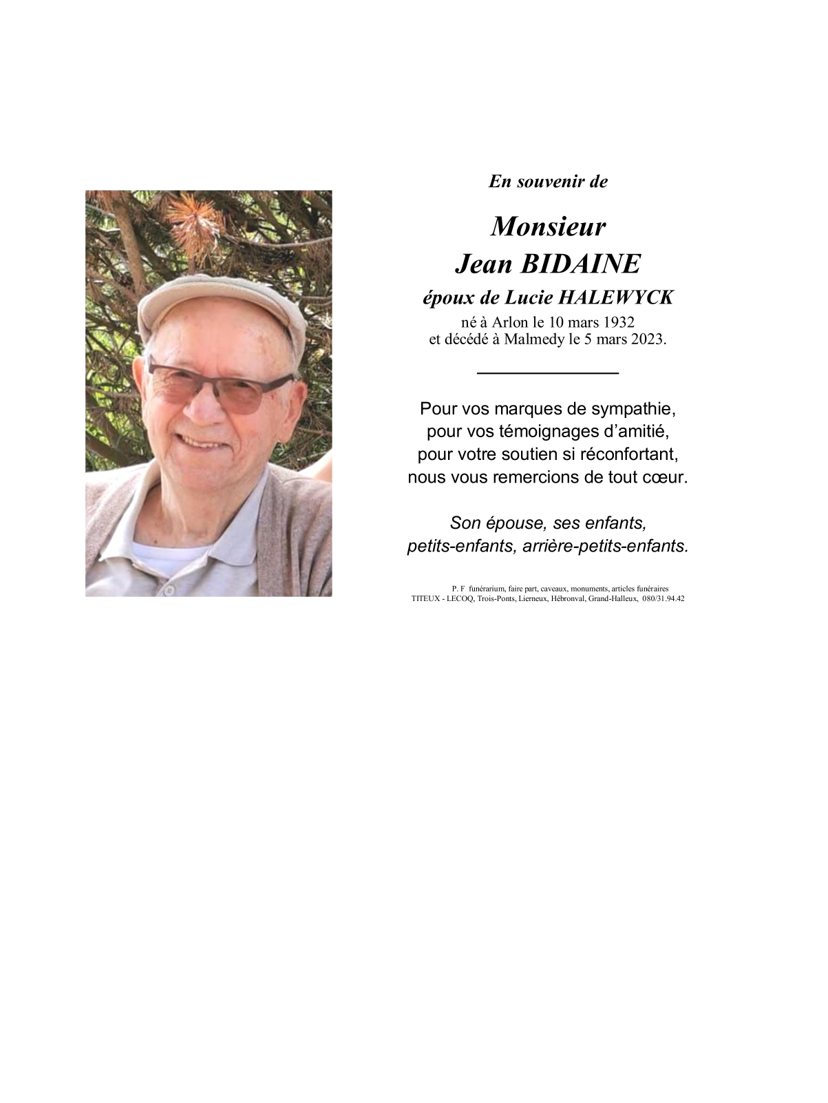 Overleden te Malmedy (4960) op zondag 5 maart 2023 op 90-jarige leeftijd