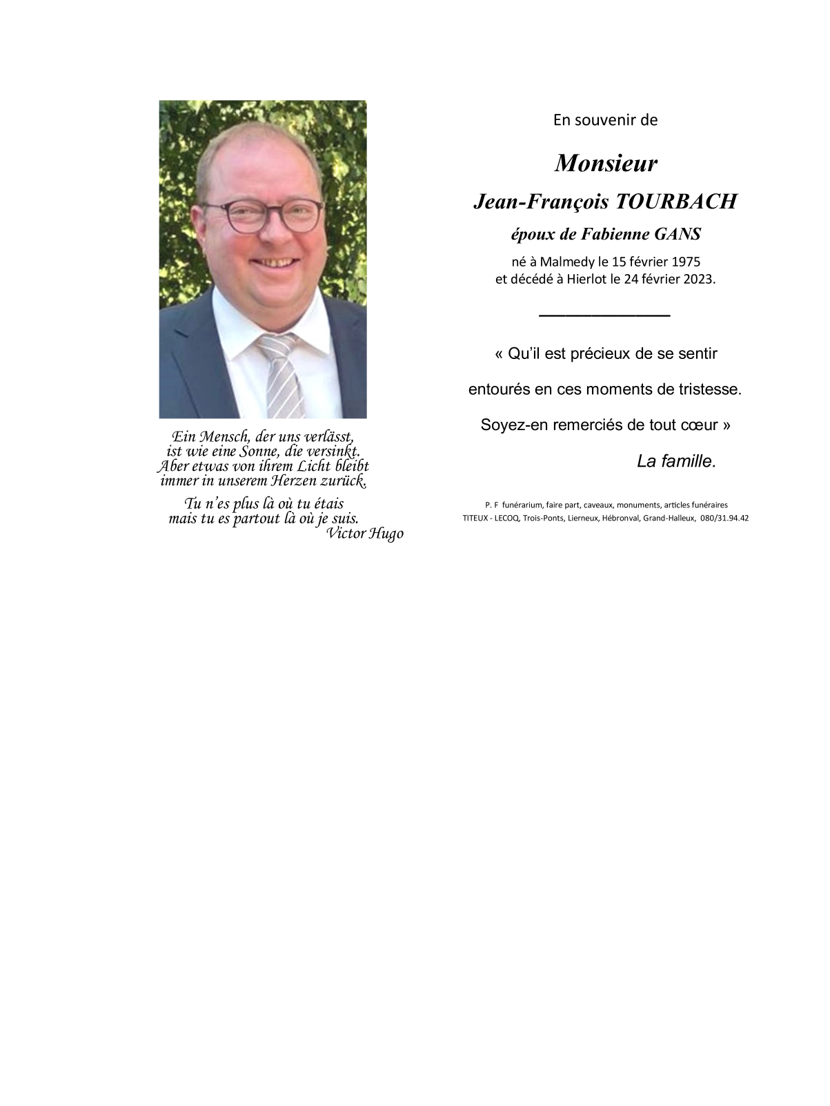 Fallecido en Hierlot (4990) el viernes, 24 de febrero de 2023 a la edad de 48 años