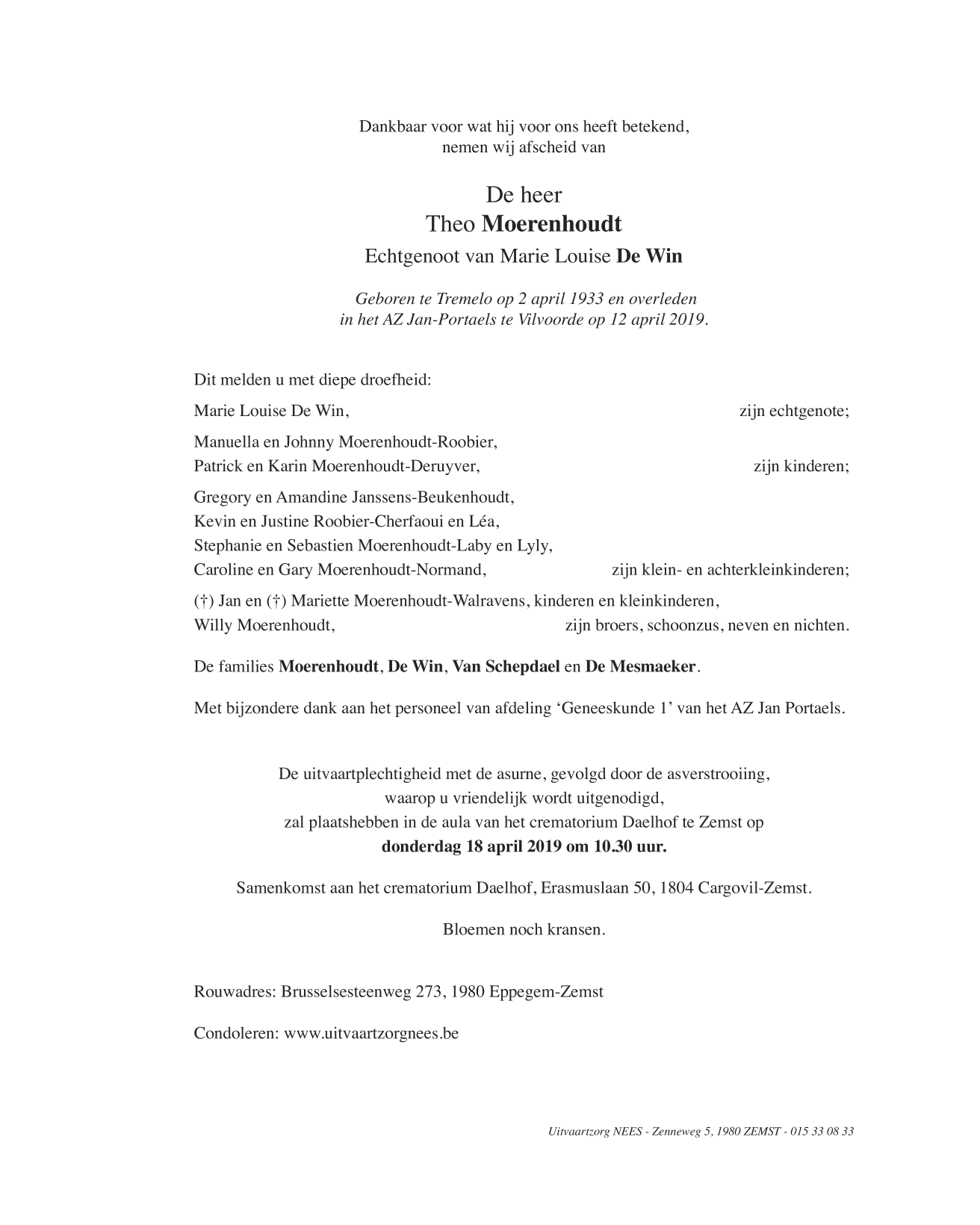 Died in Vilvoorde (1800) on 12 April 2019 at the age of 86 years