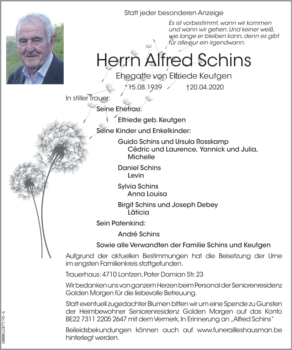 Died in Walhorn (4711) on 20 April 2020 at the age of 80 years