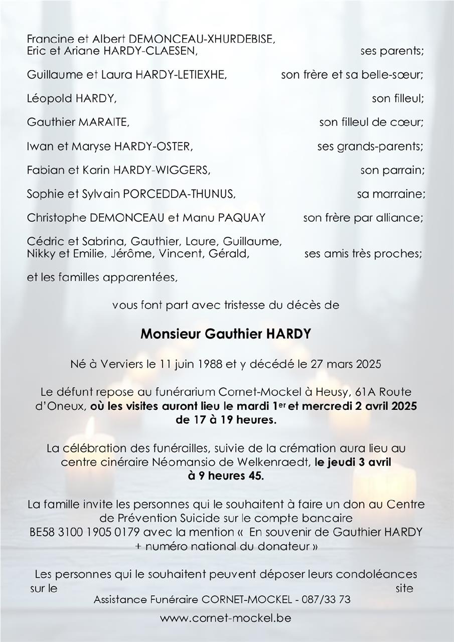 Fallecido en Verviers (4800) el jueves, 27 de marzo de 2025 a la edad de 36 años