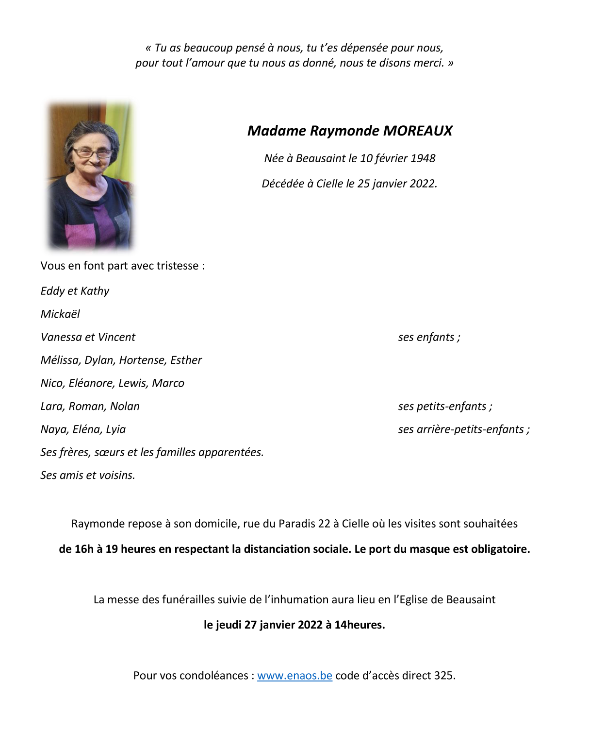 Overleden te La Roche-en-Ardenne (6980) op dinsdag 25 januari 2022 op 73-jarige leeftijd