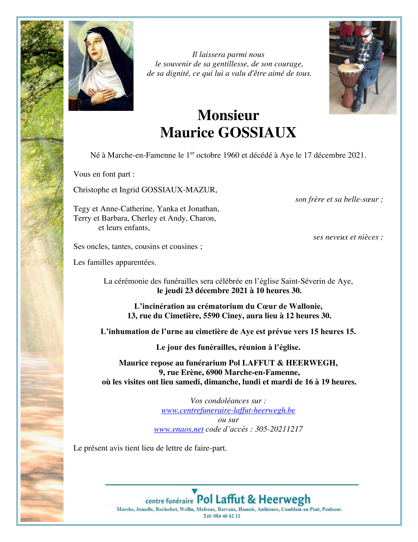 Died in Aye (6900) on 17 December 2021 at the age of 61 years