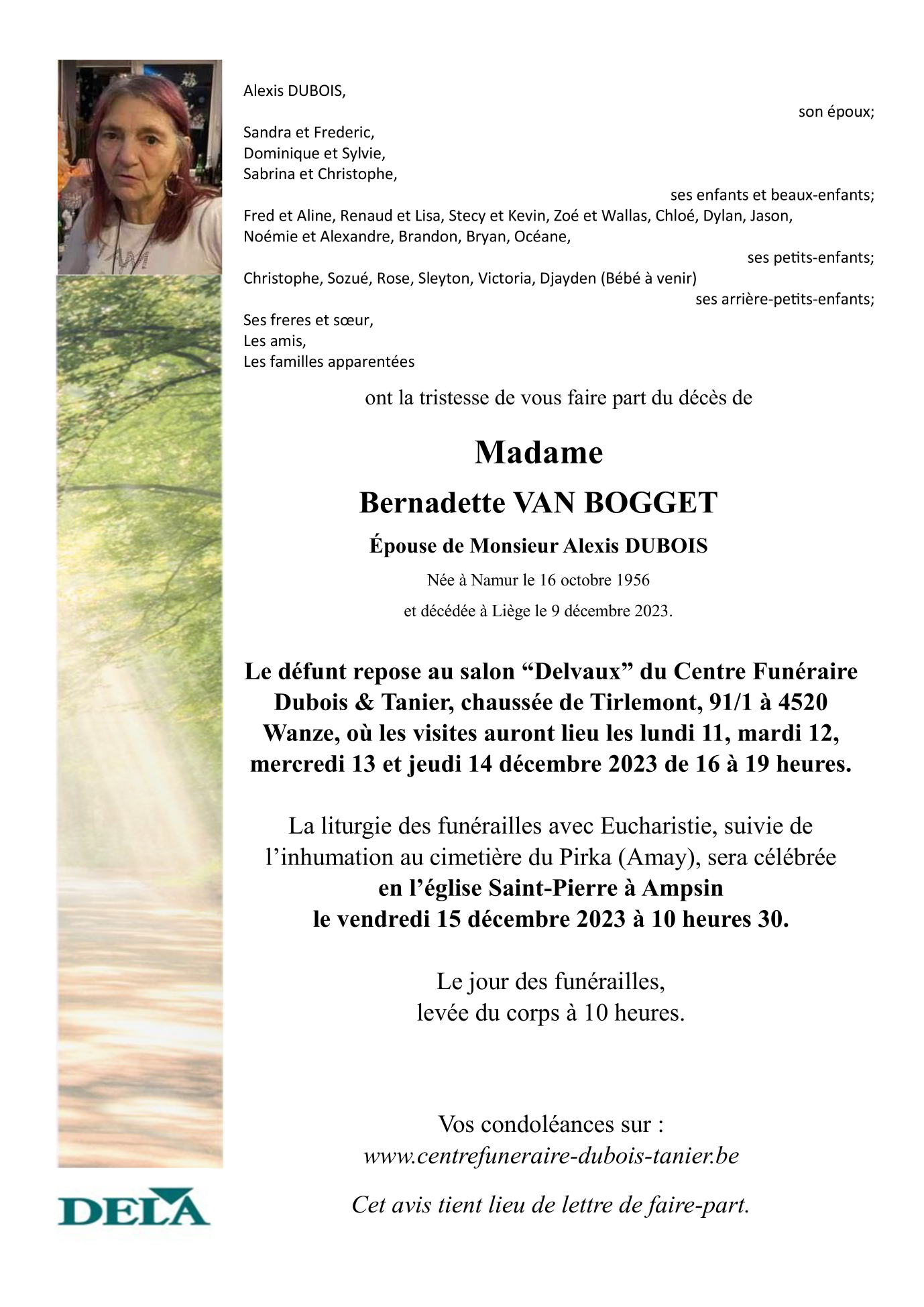 Fallecida en Liège (4000) el sábado, 9 de diciembre de 2023 a la edad de 67 años