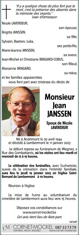 Décédé à Lambermont (4800) le mercredi 11 janvier 2023 à l'âge de 78 ans