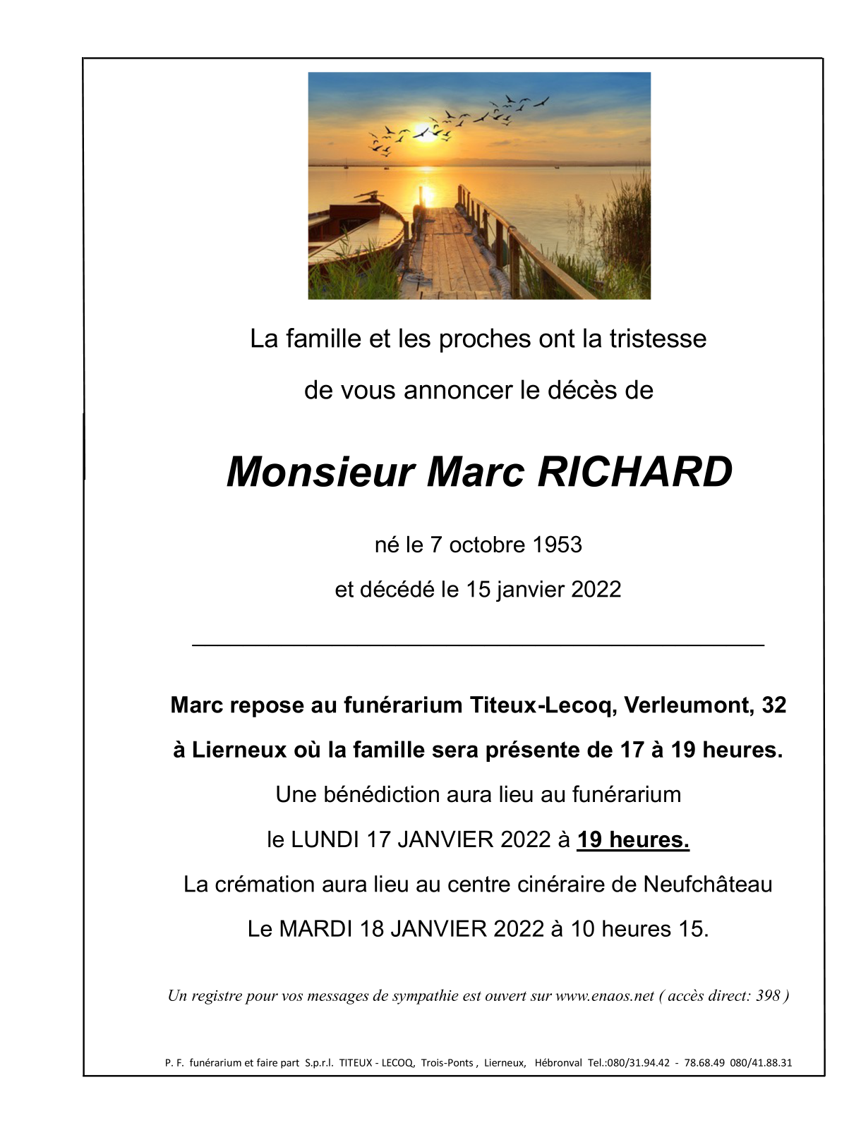 Fallecido en Amonines (6997) el sábado, 15 de enero de 2022 a la edad de 68 años
