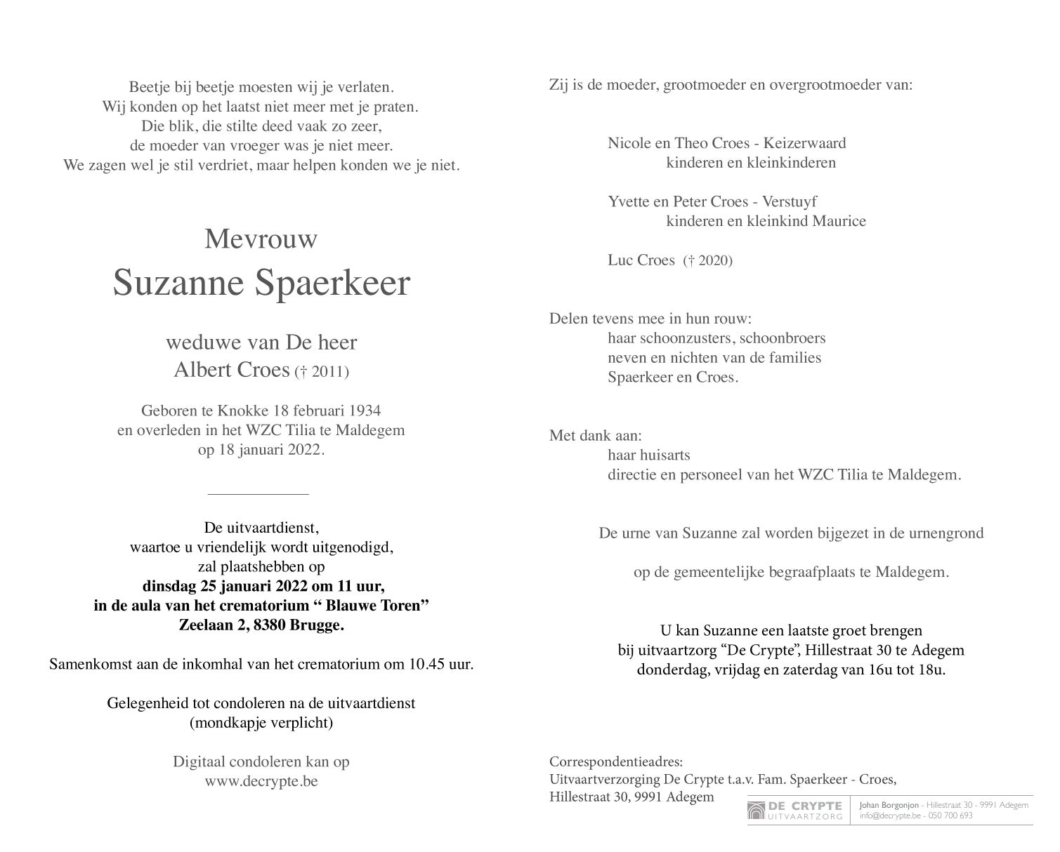 Décédée à Maldegem (9990) le mardi 18 janvier 2022 à l'âge de 87 ans