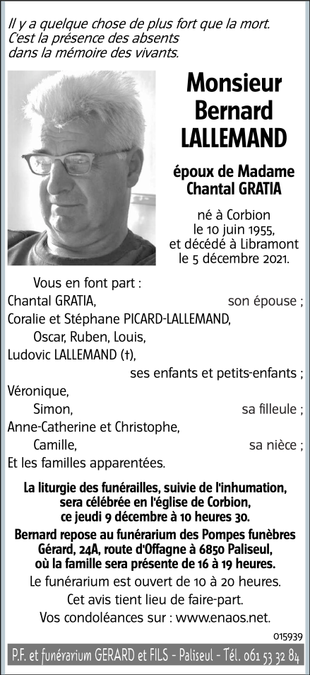 Fallecido en Libramont (6800) el lunes, 6 de diciembre de 2021 a la edad de 66 años